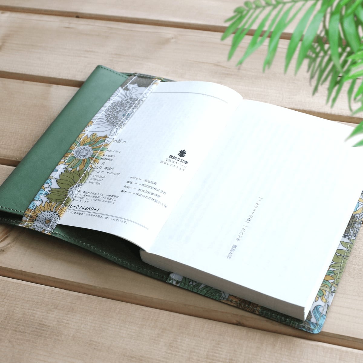 ブックカバー おしゃれ かわいい フリーサイズ 手帳カバー 革 文庫本 新書 B6判 46判 A5判 グリーン リバティ クリスマス