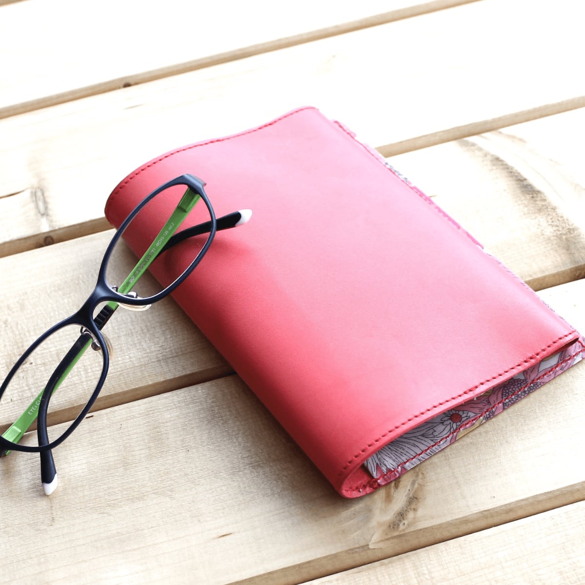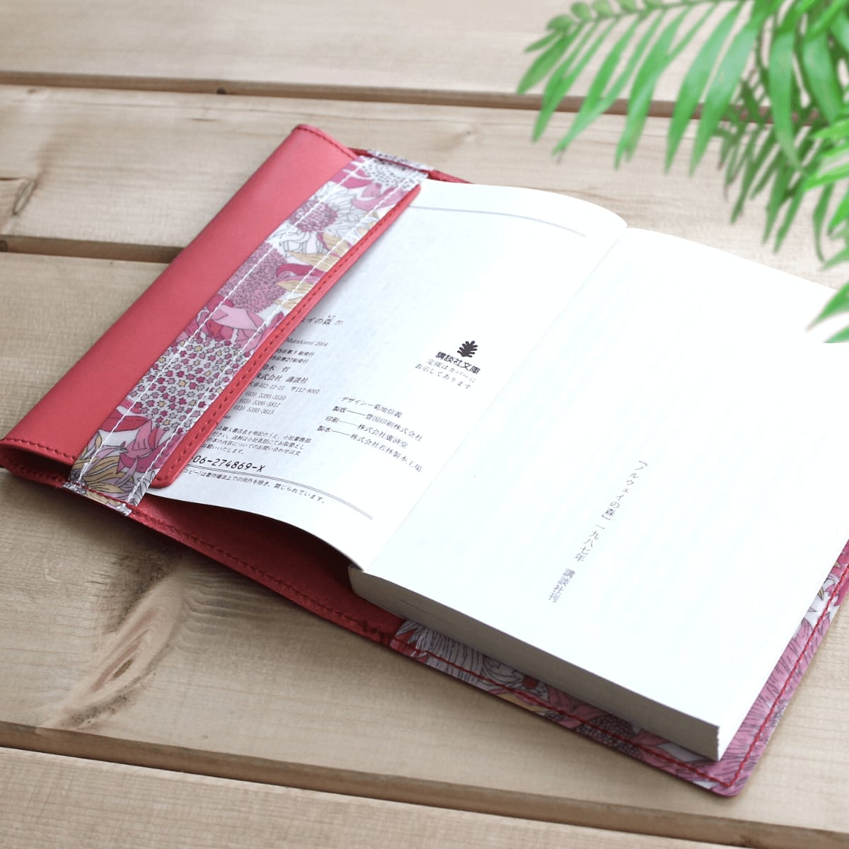 ブックカバー おしゃれ かわいい フリーサイズ 手帳カバー 革 文庫本 新書 B6判 46判 A5判 ローズピンク リバティ クリスマス
