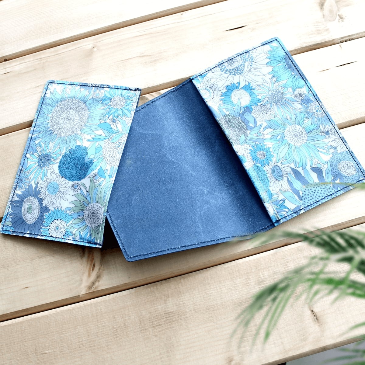 ブックカバー おしゃれ かわいい フリーサイズ 手帳カバー 革 文庫本 新書 B6判 46判 A5判 ブルー リバティ クリスマス