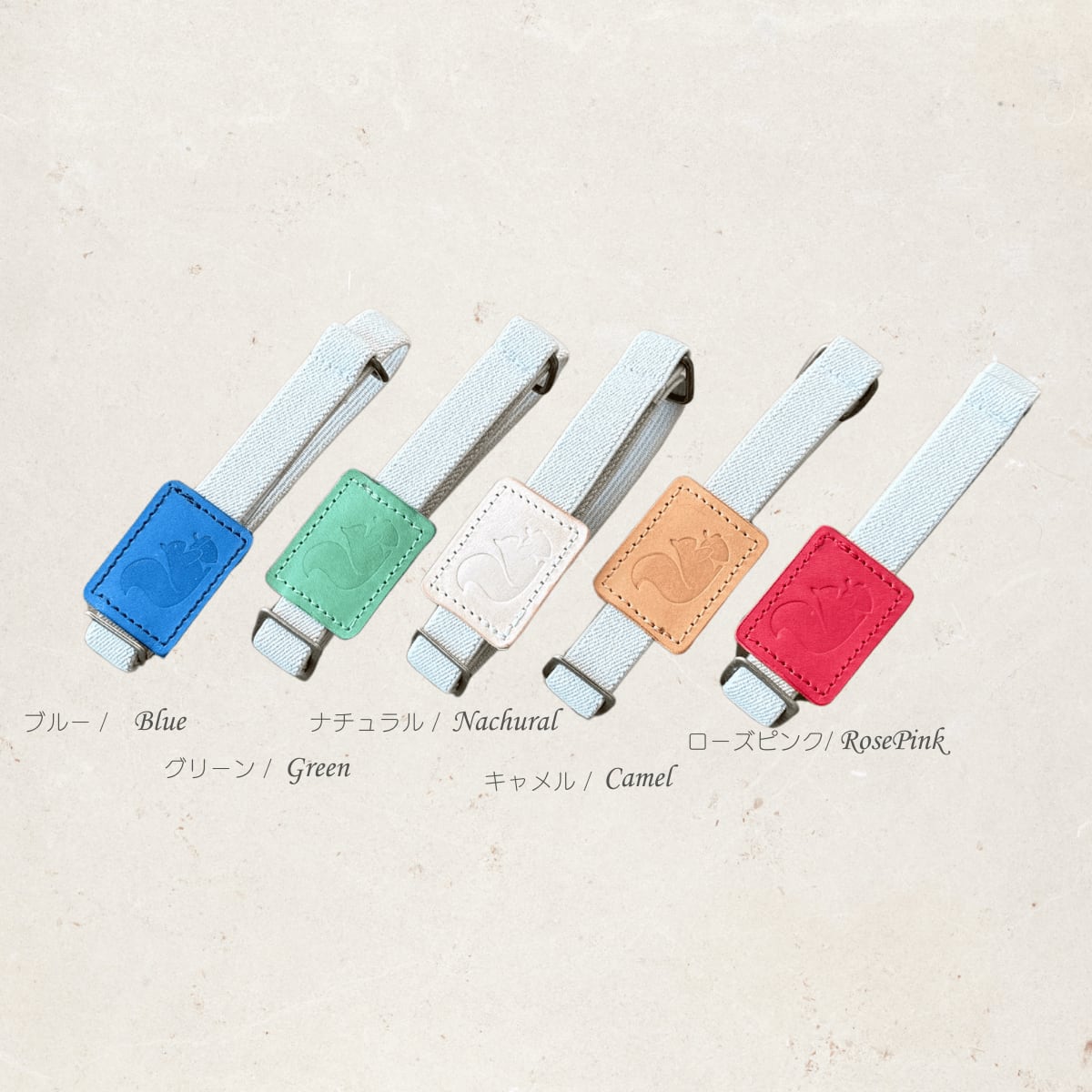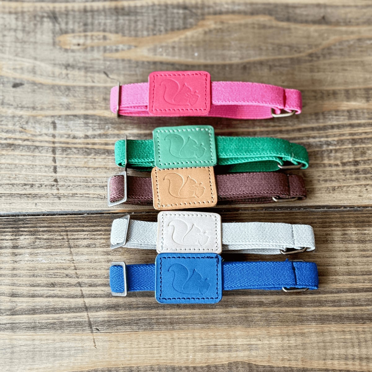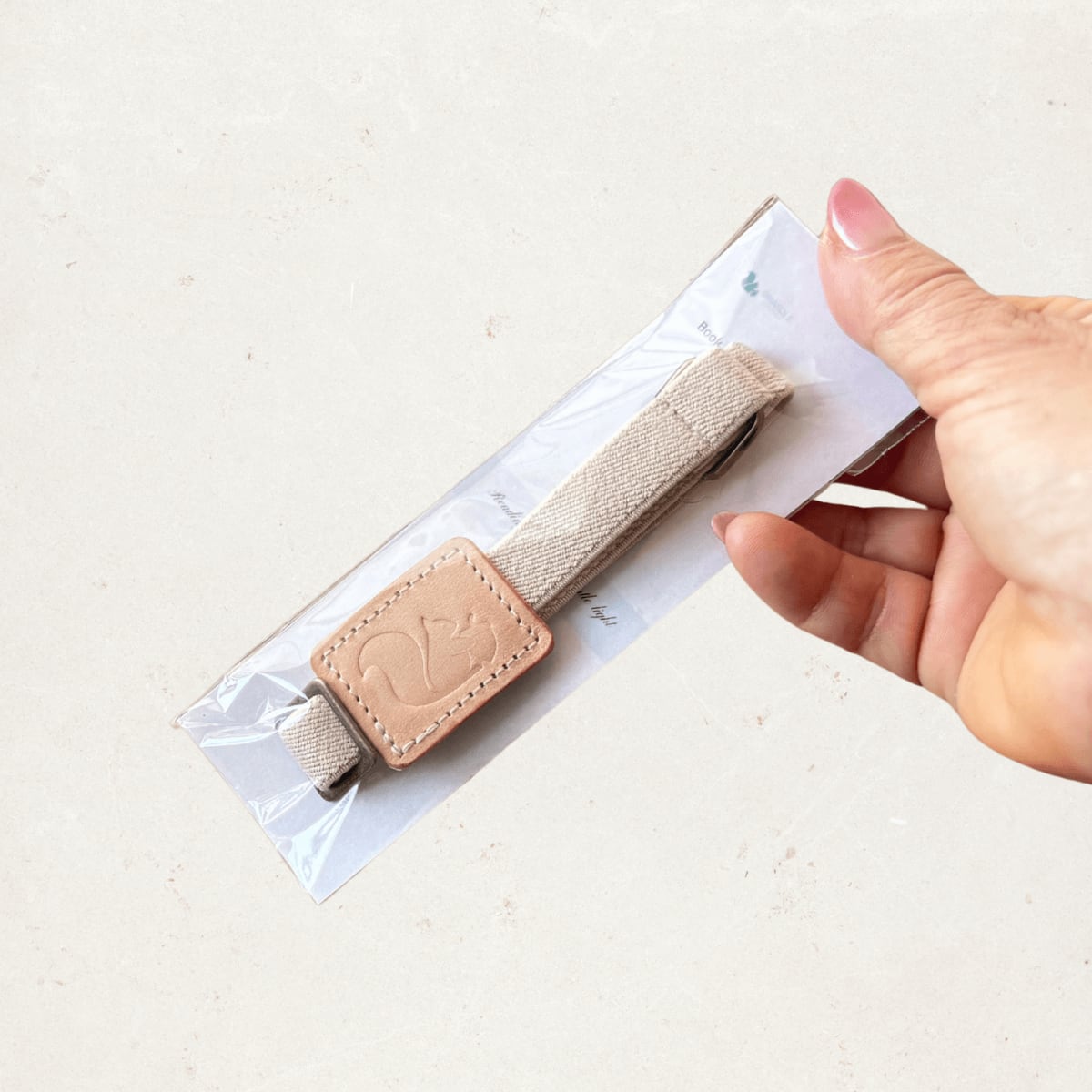 上質な革の存在感と、愛らしいリスのデザインが目を引く、シンプルでおしゃれなブックバンドです。