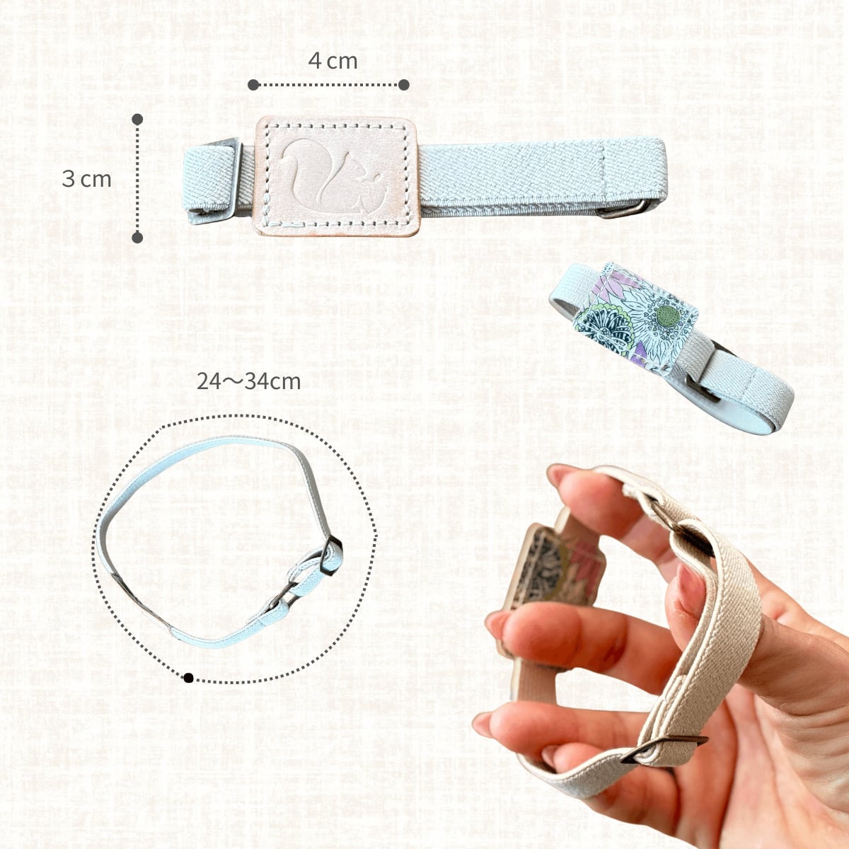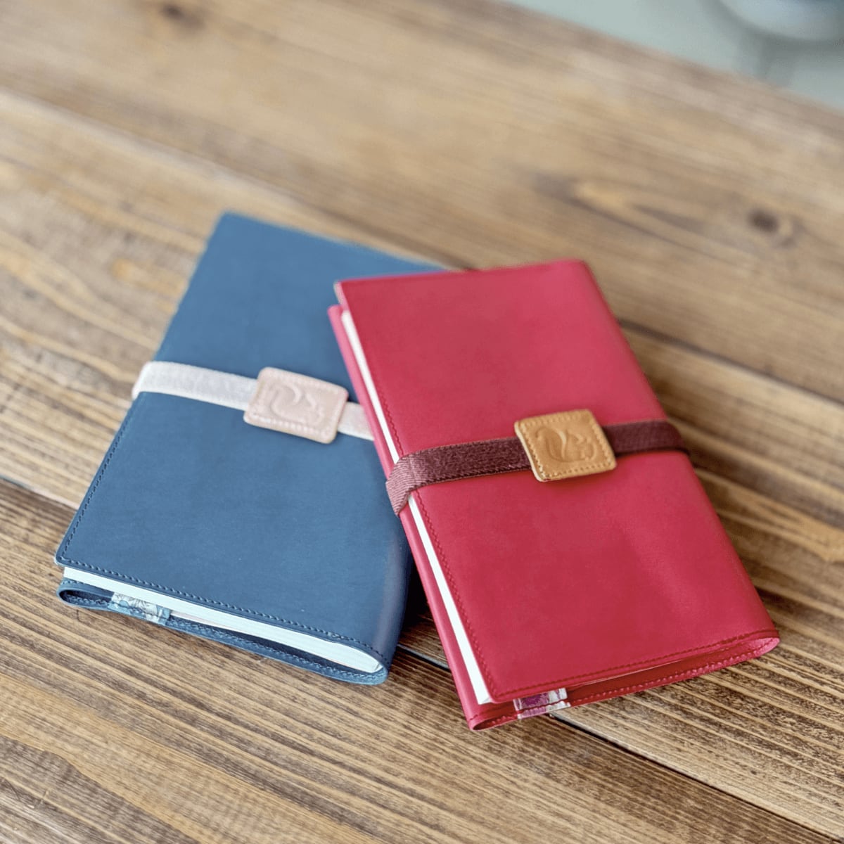 ゴムはフリーサイズ仕様でアジャスター付きのため、文庫本からA5サイズまで、どんな大きさにも対応できます。手帳やノートにもお使いいただけます。